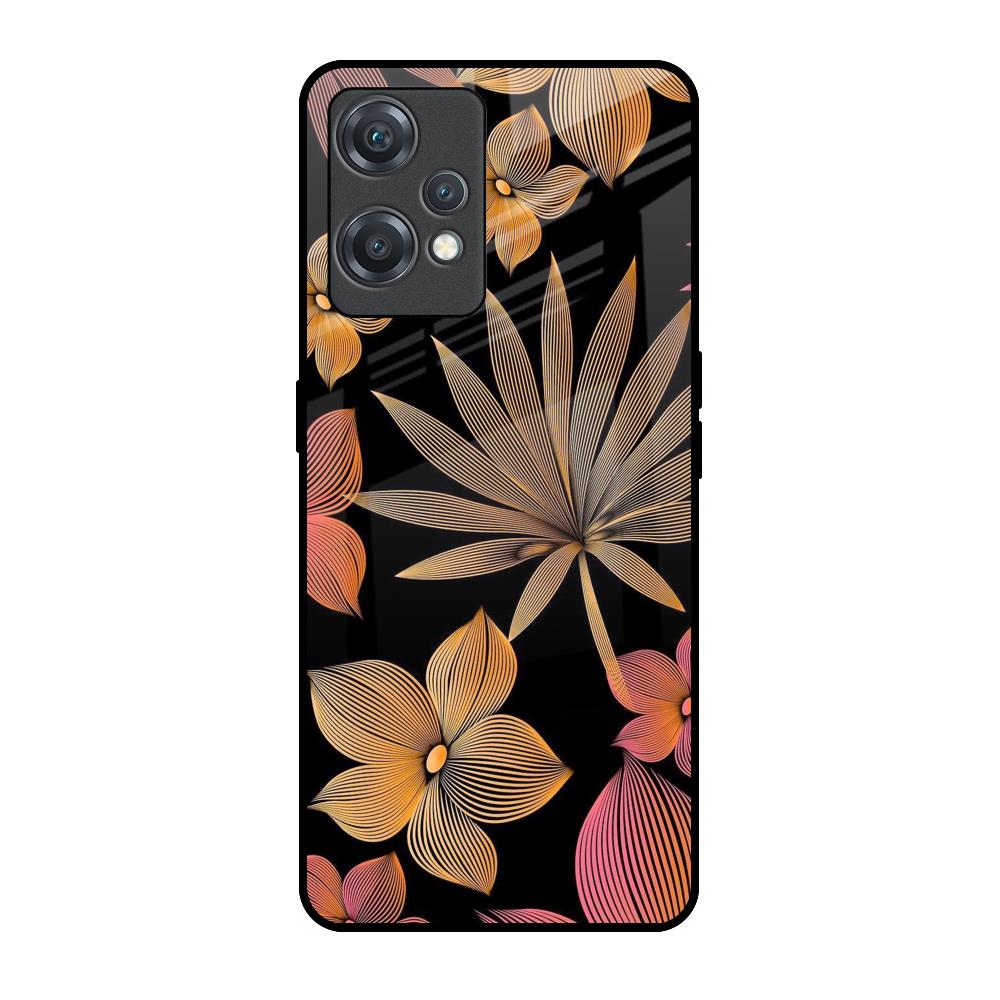 Lines Pattern Flowers Glass Case for OnePlus Nord CE 2 Lite 5G