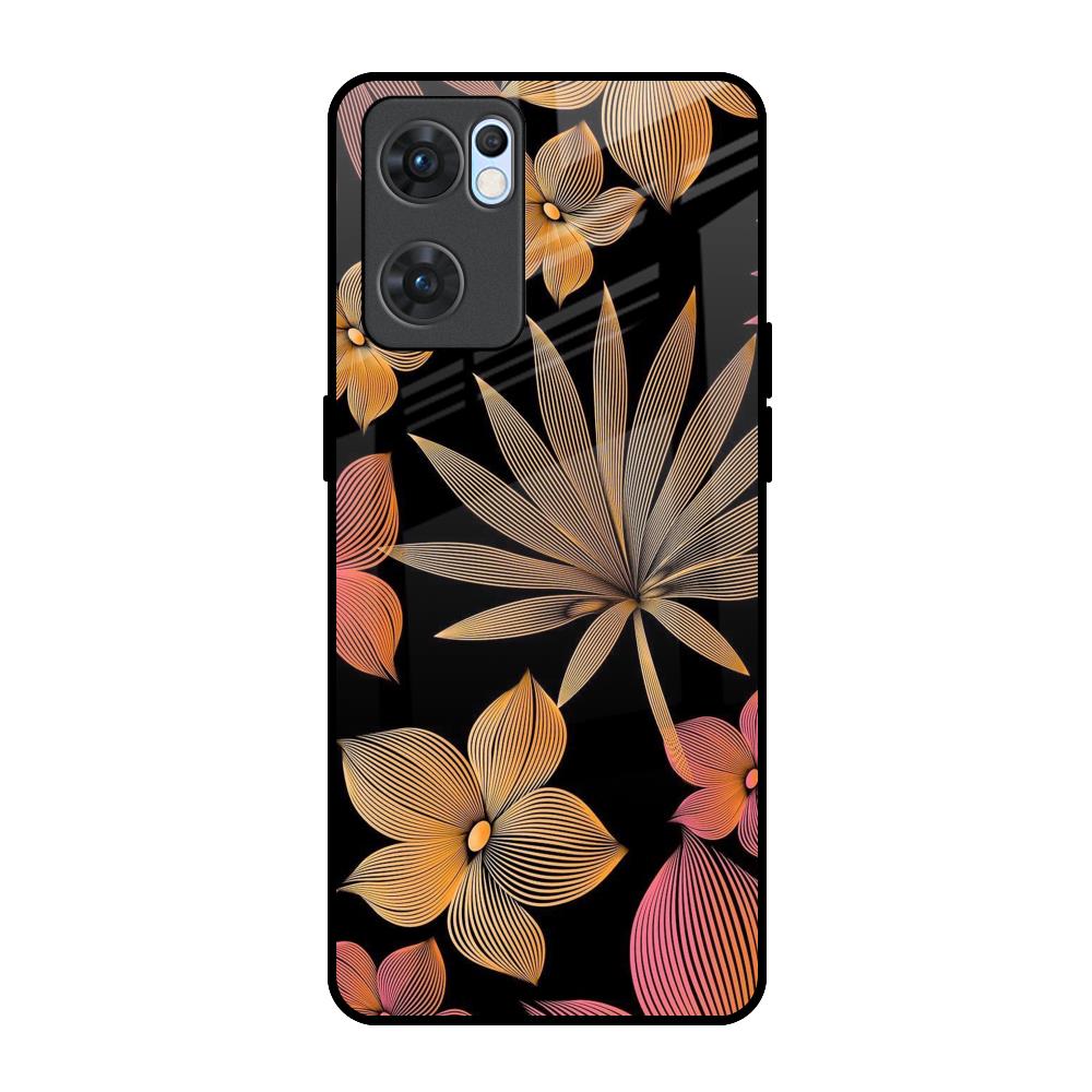 Lines Pattern Flowers Glass Case for Oppo Reno7 5G