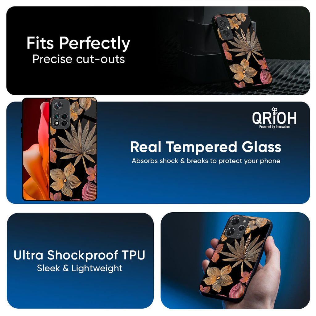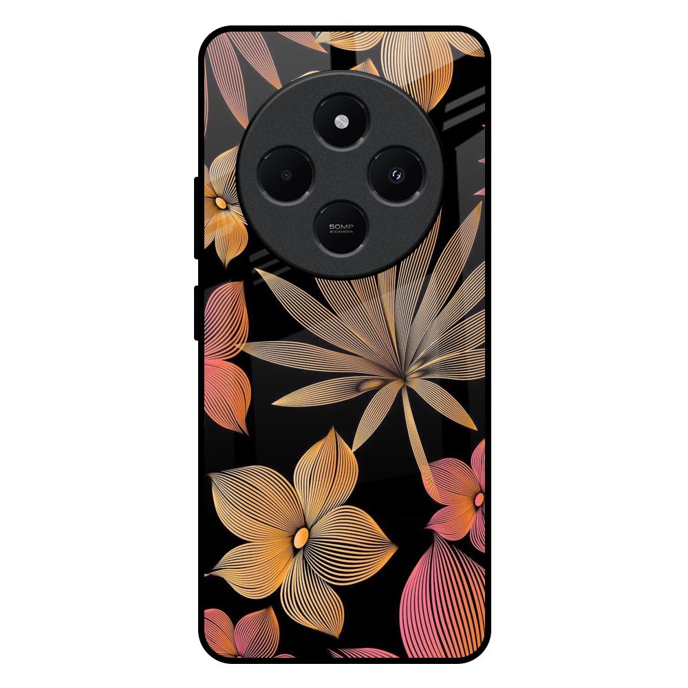 Lines Pattern Flowers Glass Case for Redmi 14C 5G