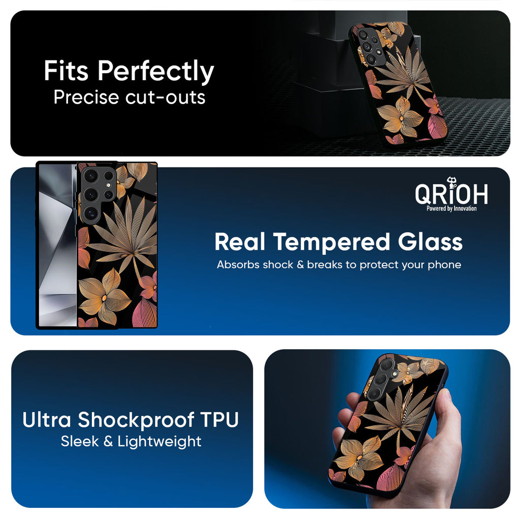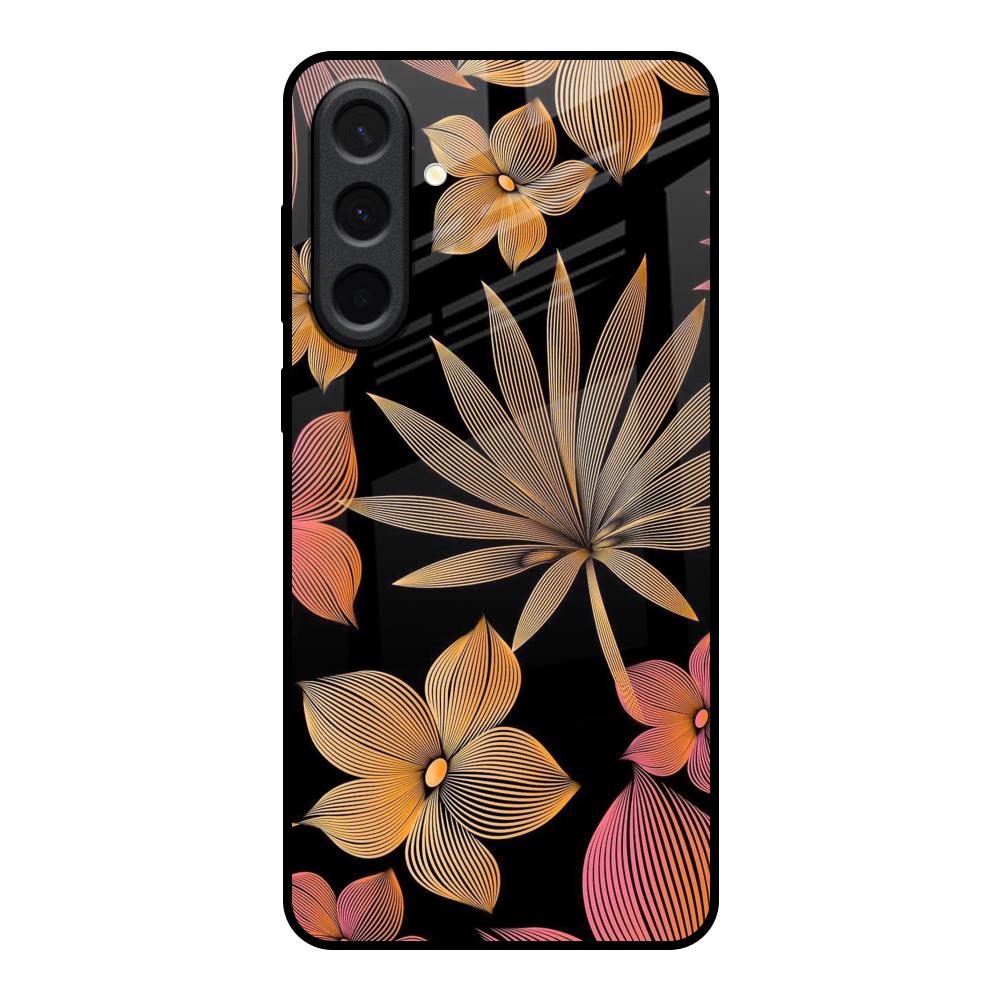 Lines Pattern Flowers Glass Case for Samsung Galaxy A37 5G