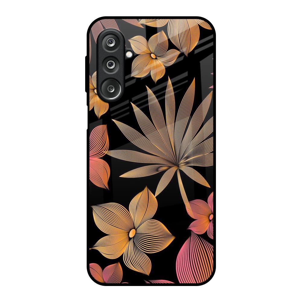 Lines Pattern Flowers Glass Case for Samsung Galaxy F36 5G