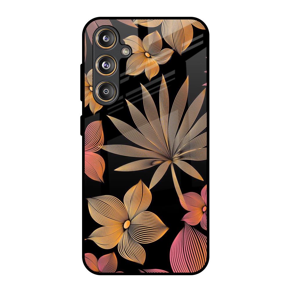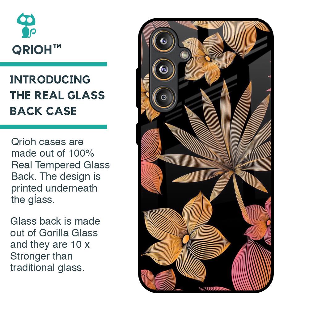 Lines Pattern Flowers Glass Case for Samsung Galaxy F55 5G