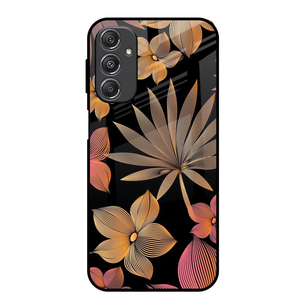 Lines Pattern Flowers Glass Case for Samsung Galaxy M34 5G