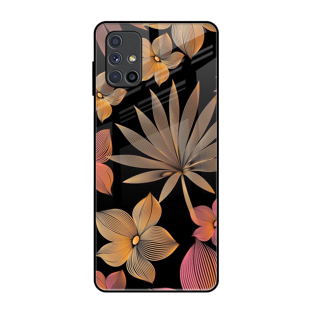 Lines Pattern Flowers Glass Case for Samsung Galaxy M51