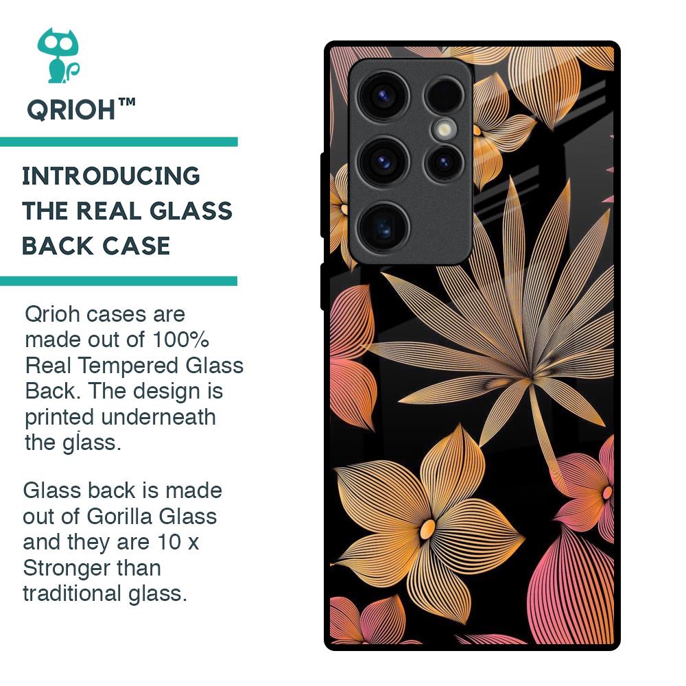 Lines Pattern Flowers Glass Case for Samsung Galaxy S23 Ultra 5G