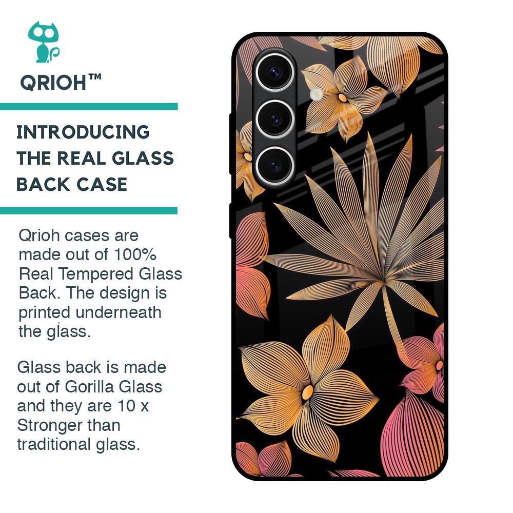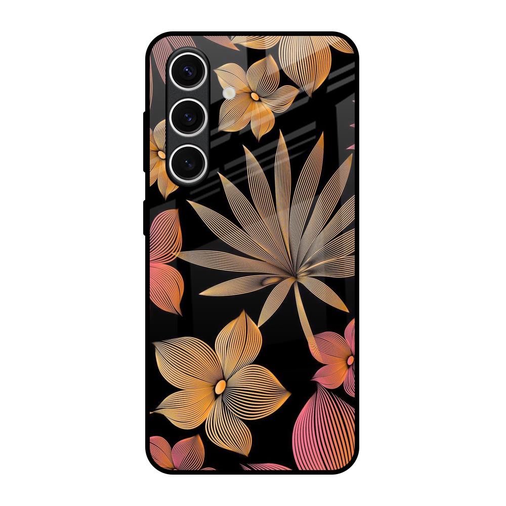 Lines Pattern Flowers Glass Case for Samsung Galaxy S24 FE 5G