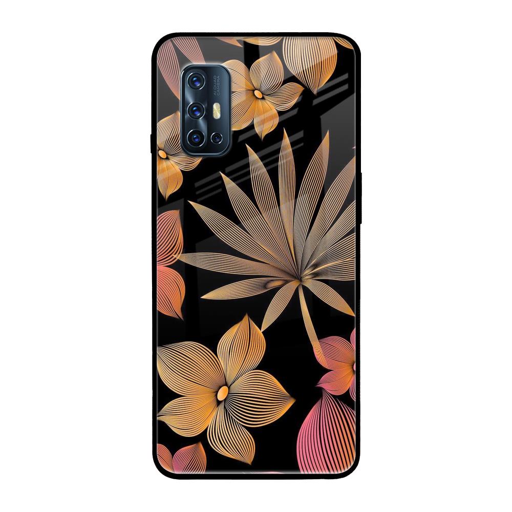 Lines Pattern Flowers Glass Case for Vivo V17