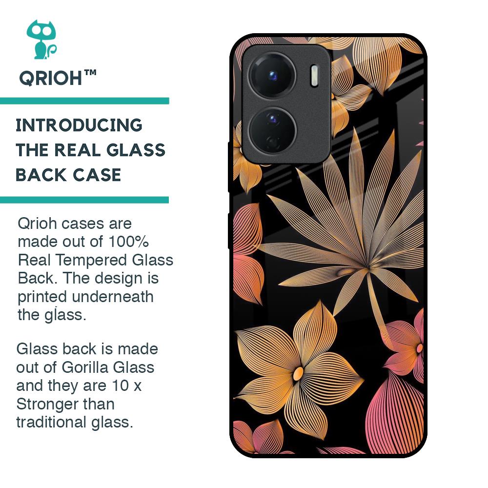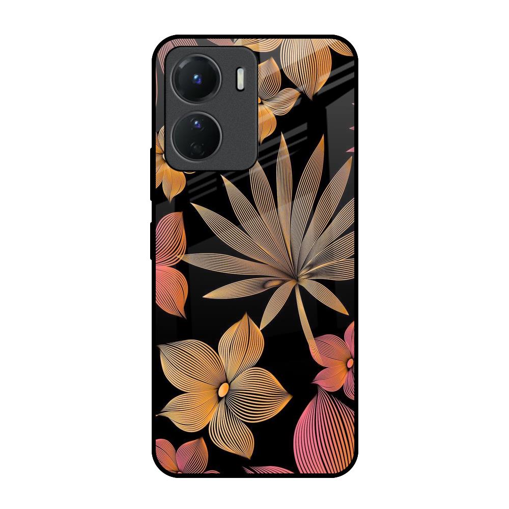 Lines Pattern Flowers Glass Case for Vivo Y16