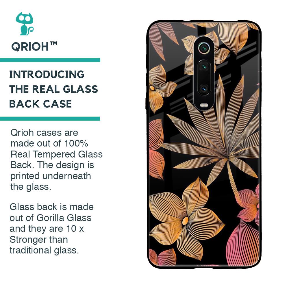 Lines Pattern Flowers Glass Case for Xiaomi Redmi K20