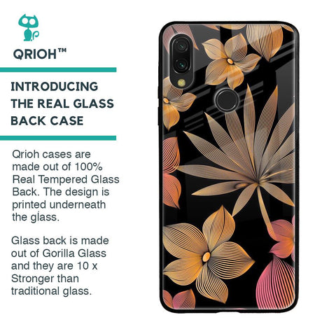 Lines Pattern Flowers Glass Case for Xiaomi Redmi Note 7 Pro