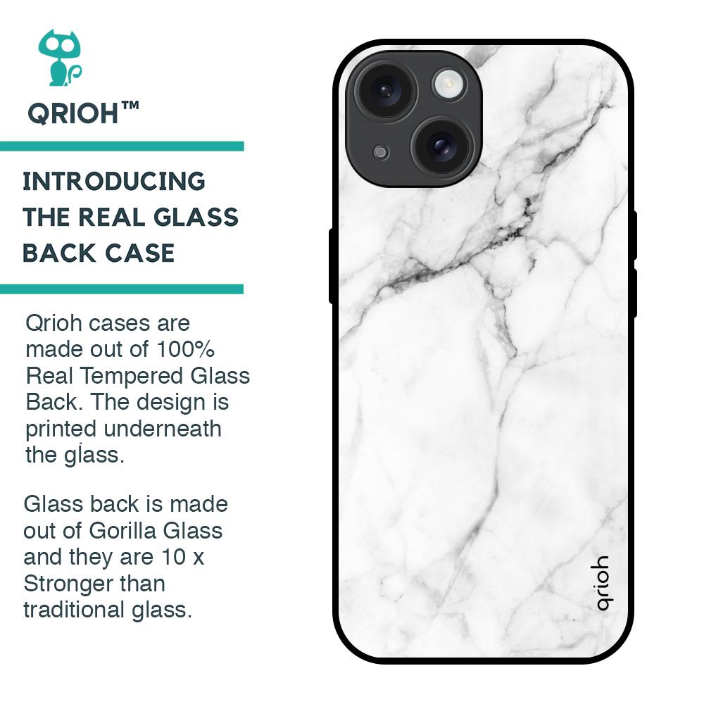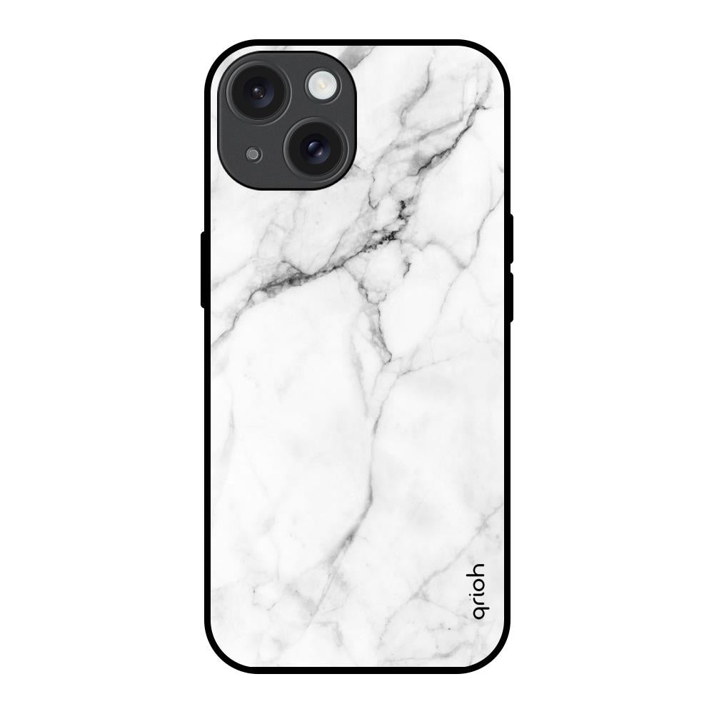 Modern White Marble Glass Case for iPhone 15