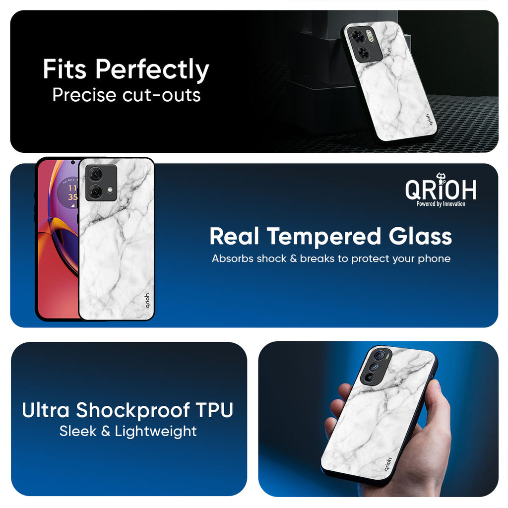 Modern White Marble Glass Case for Motorola Edge 50 Fusion 5G