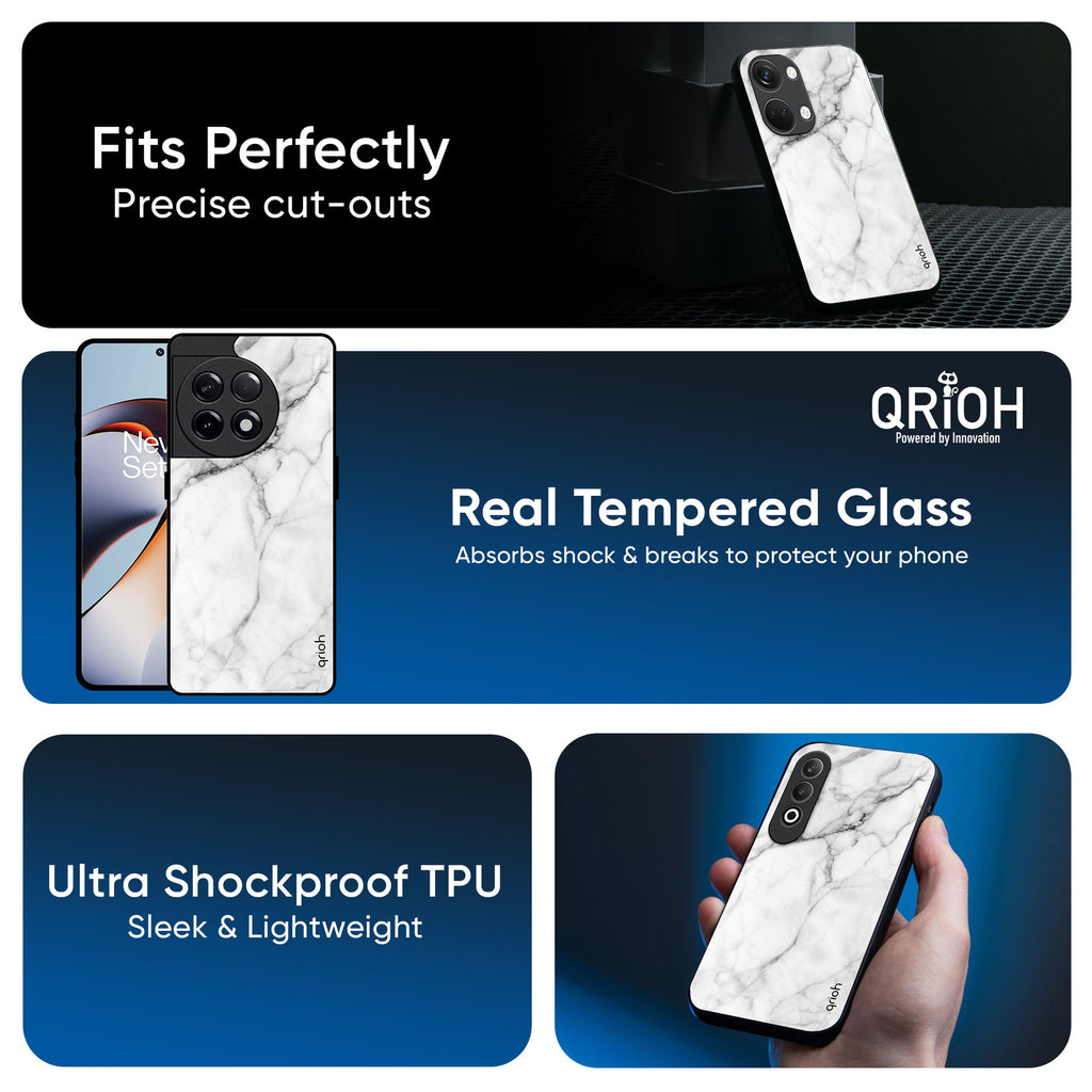 Modern White Marble Glass Case for OnePlus 15 5G