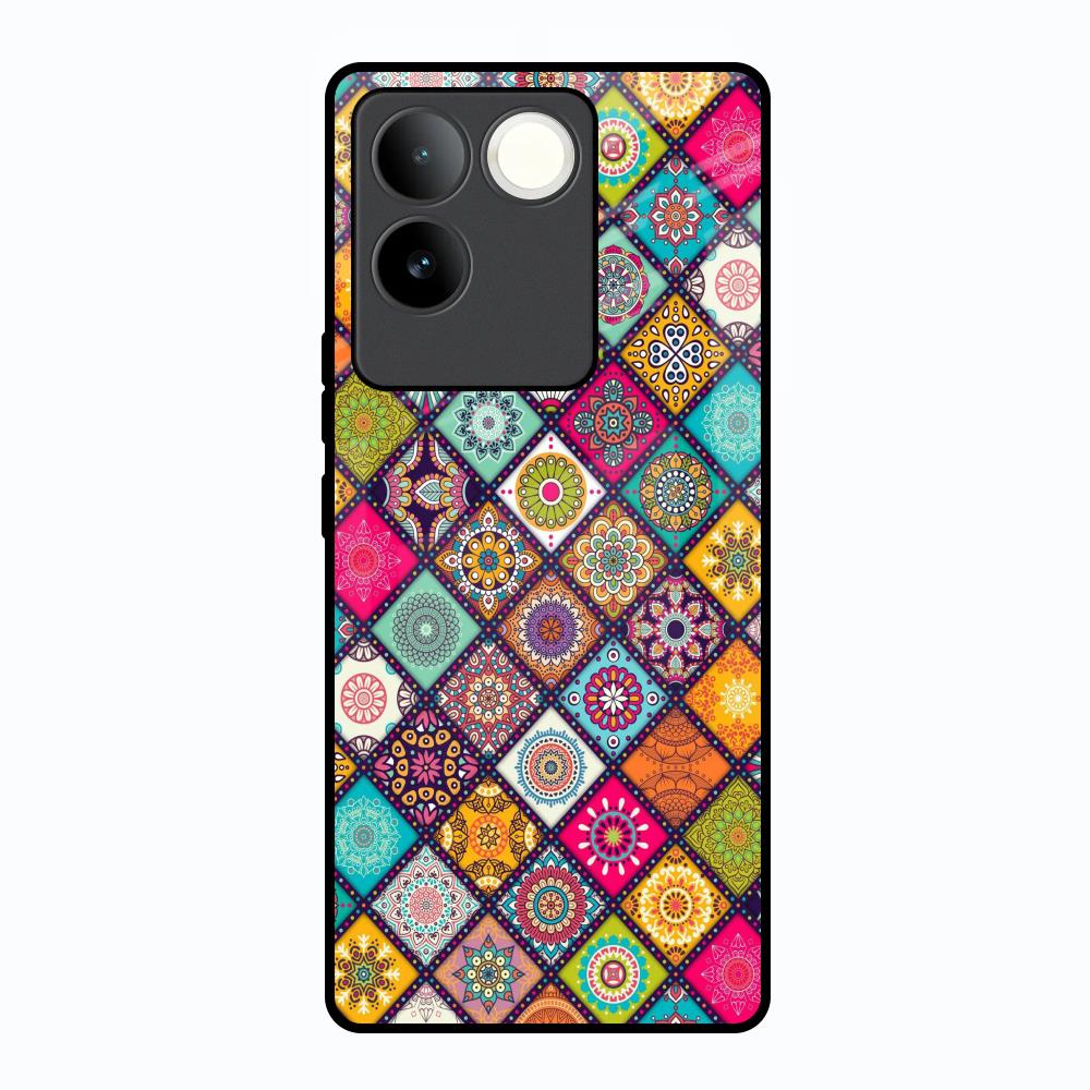 Multicolor Mandala Glass Case for Vivo T2 Pro 5G