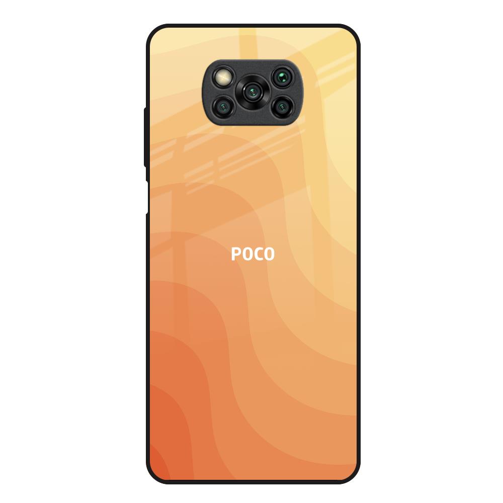 Orange Curve Pattern Glass Case for Poco X3