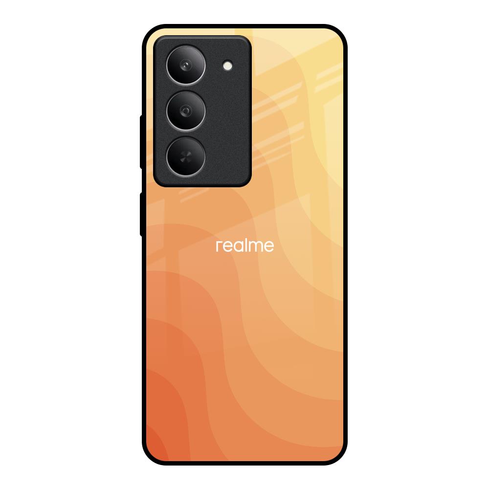 Orange Curve Pattern Glass Case for Realme 14x 5G
