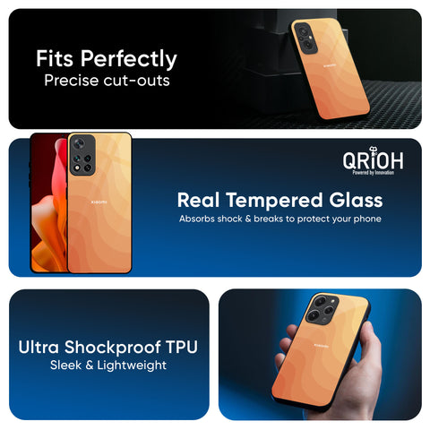 Orange Curve Pattern Glass Case for Redmi Note 14 Pro 5G