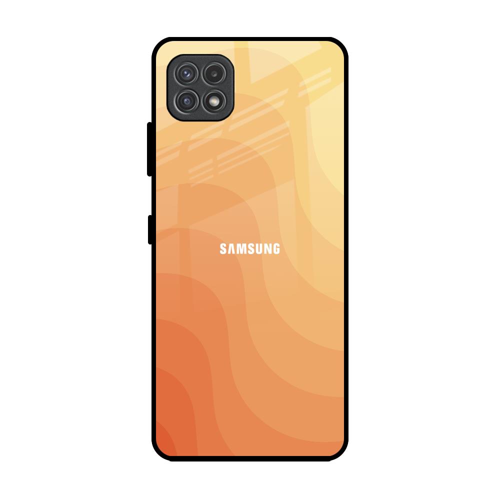 Orange Curve Pattern Glass Case for Samsung Galaxy F42 5G