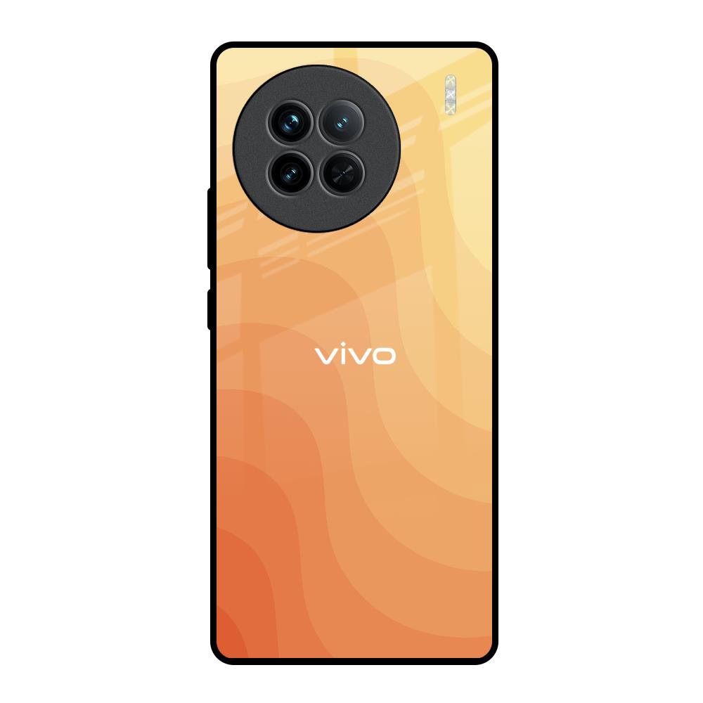 Orange Curve Pattern Glass Case for Vivo X90 5G