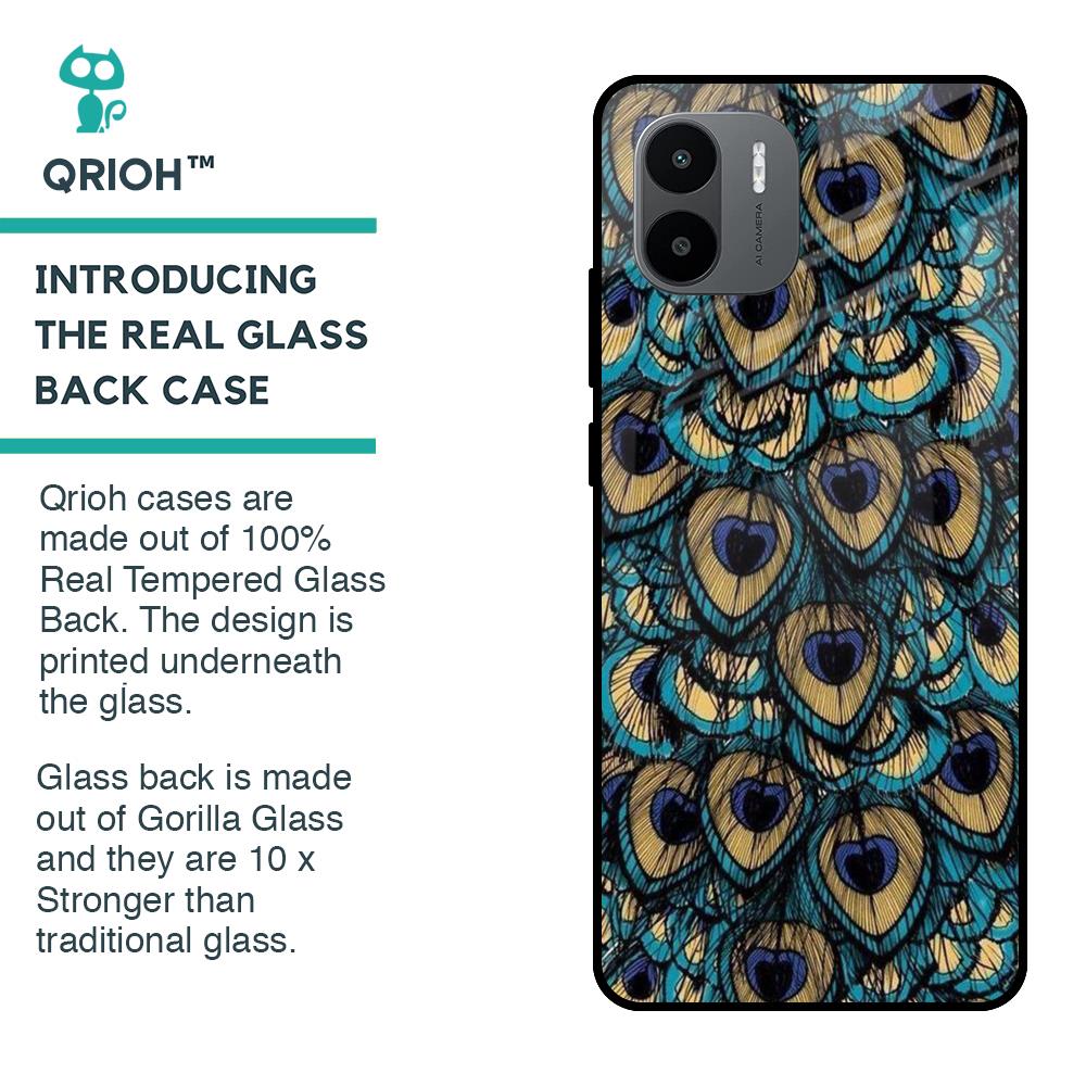 Peacock Feathers Glass case for Redmi A1 Plus