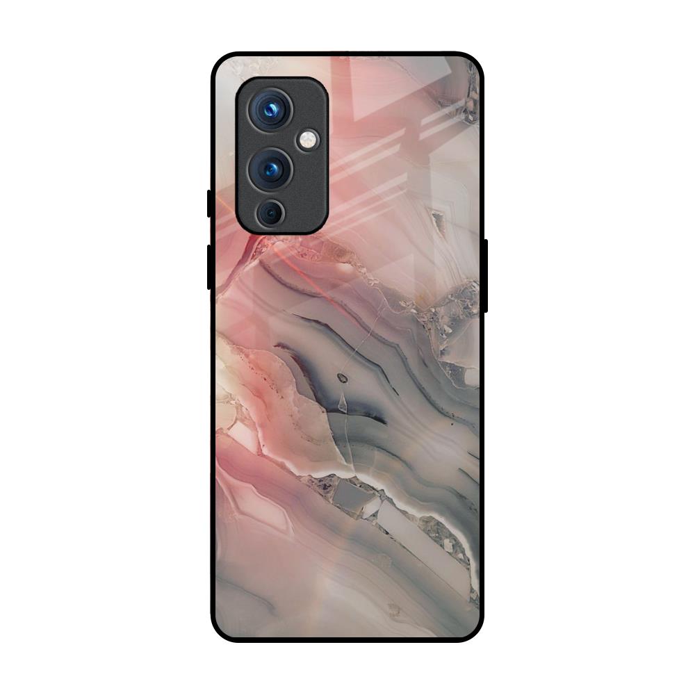 Pink And Grey Marble Glass Case For OnePlus 9