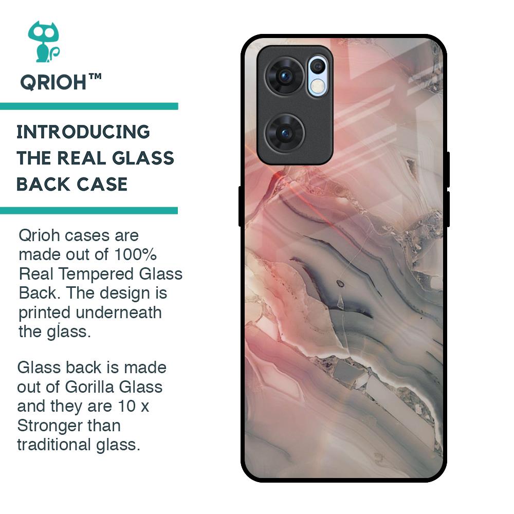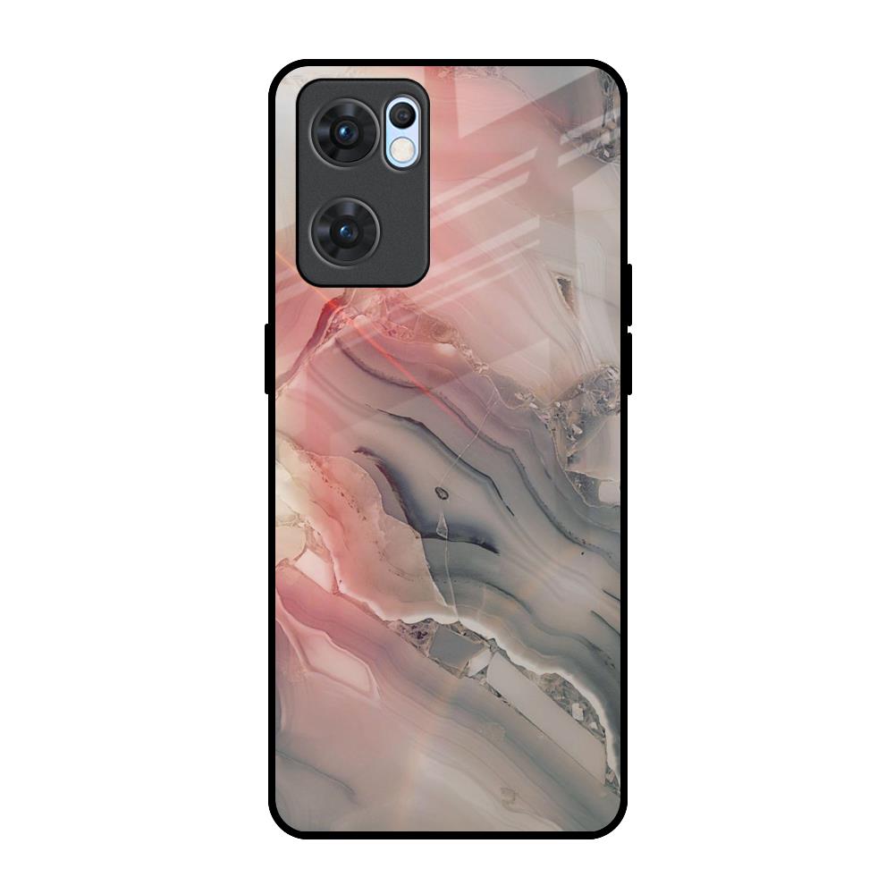 Pink And Grey Marble Glass Case For Oppo Reno7 5G