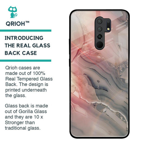Pink And Grey Marble Glass Case For Redmi 9 prime