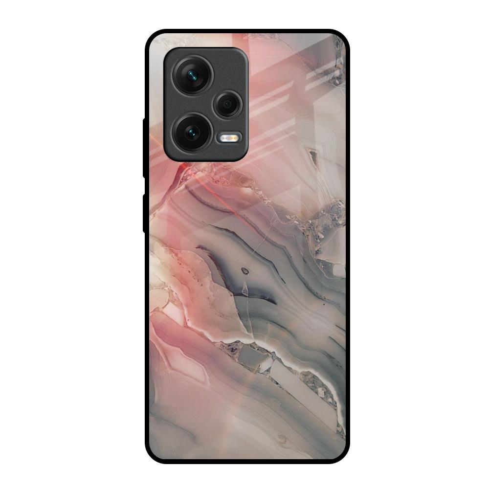 Pink And Grey Marble Glass Case For Redmi Note 12 Pro Plus 5G