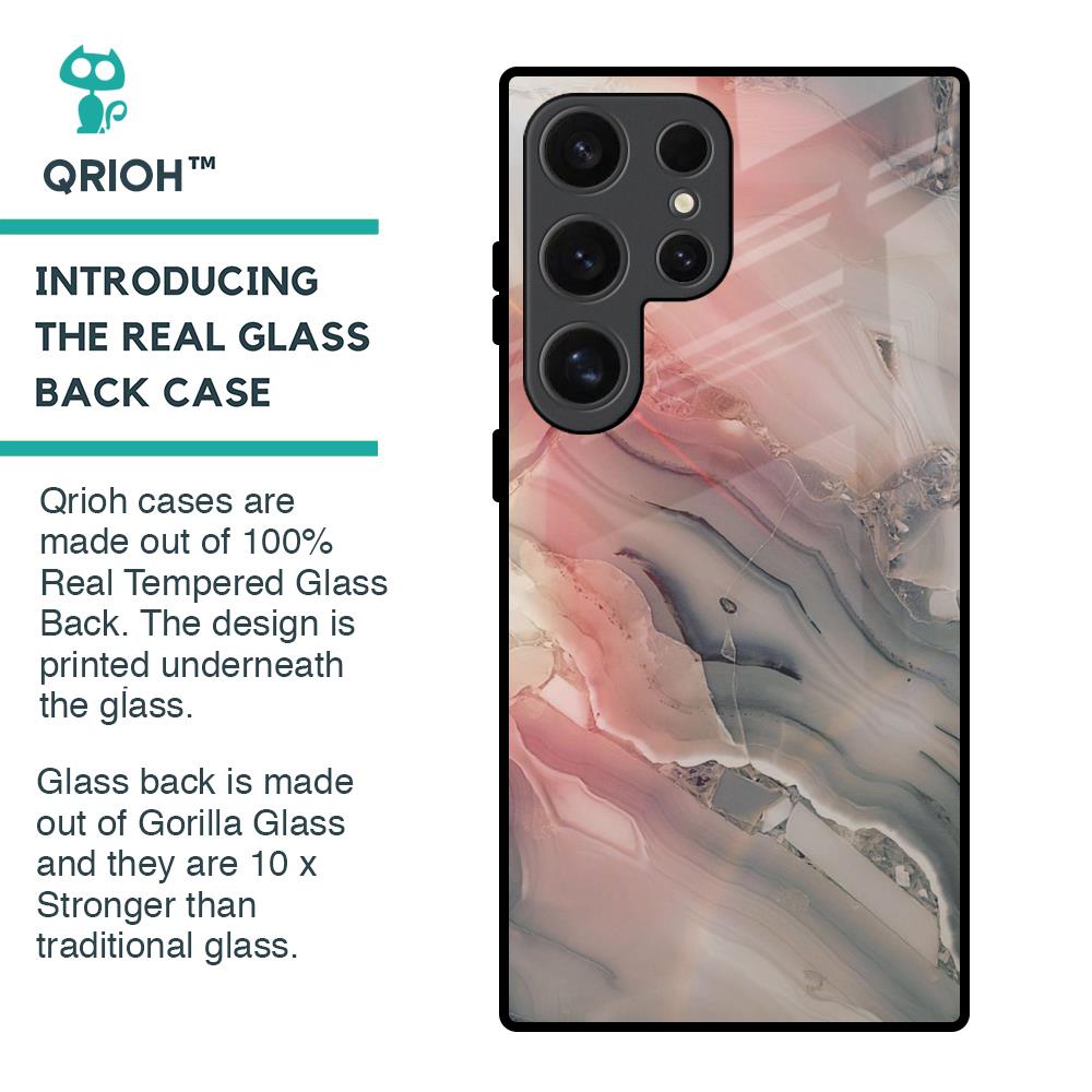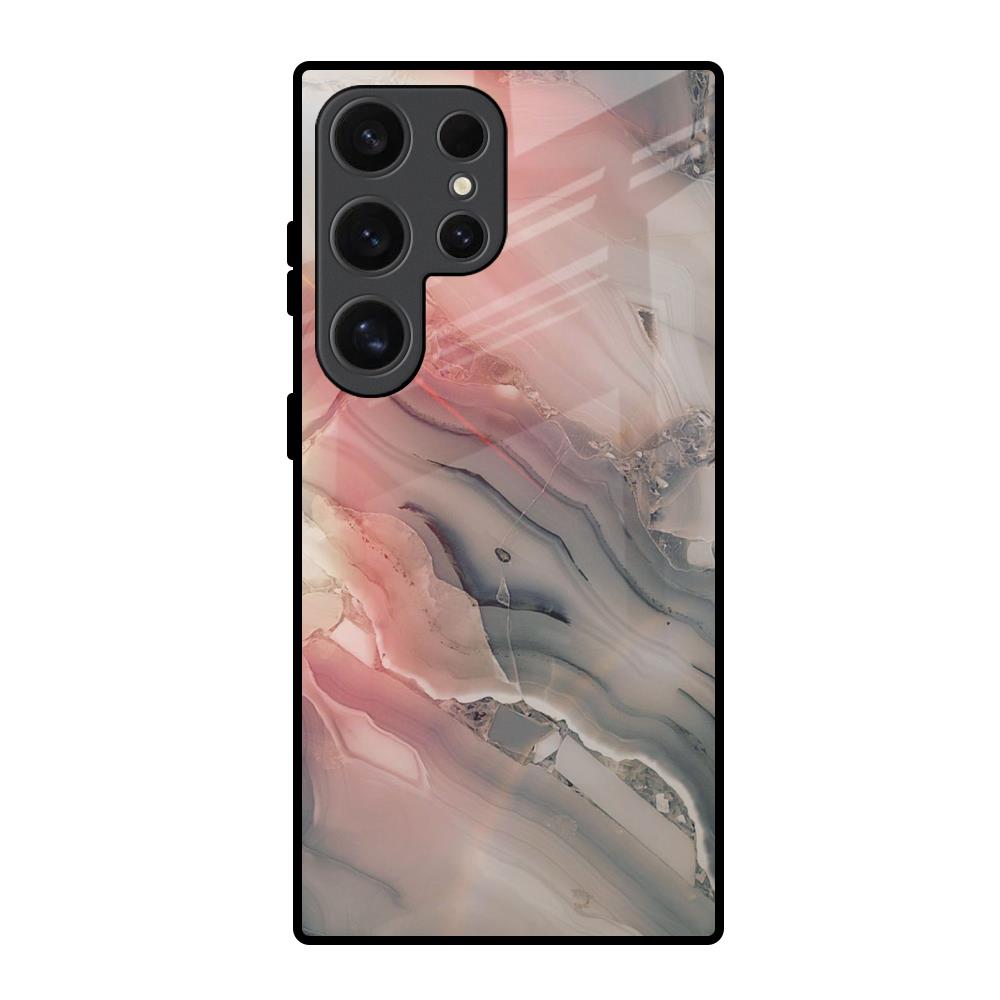 Pink And Grey Marble Glass Case For Samsung Galaxy S24 Ultra 5G