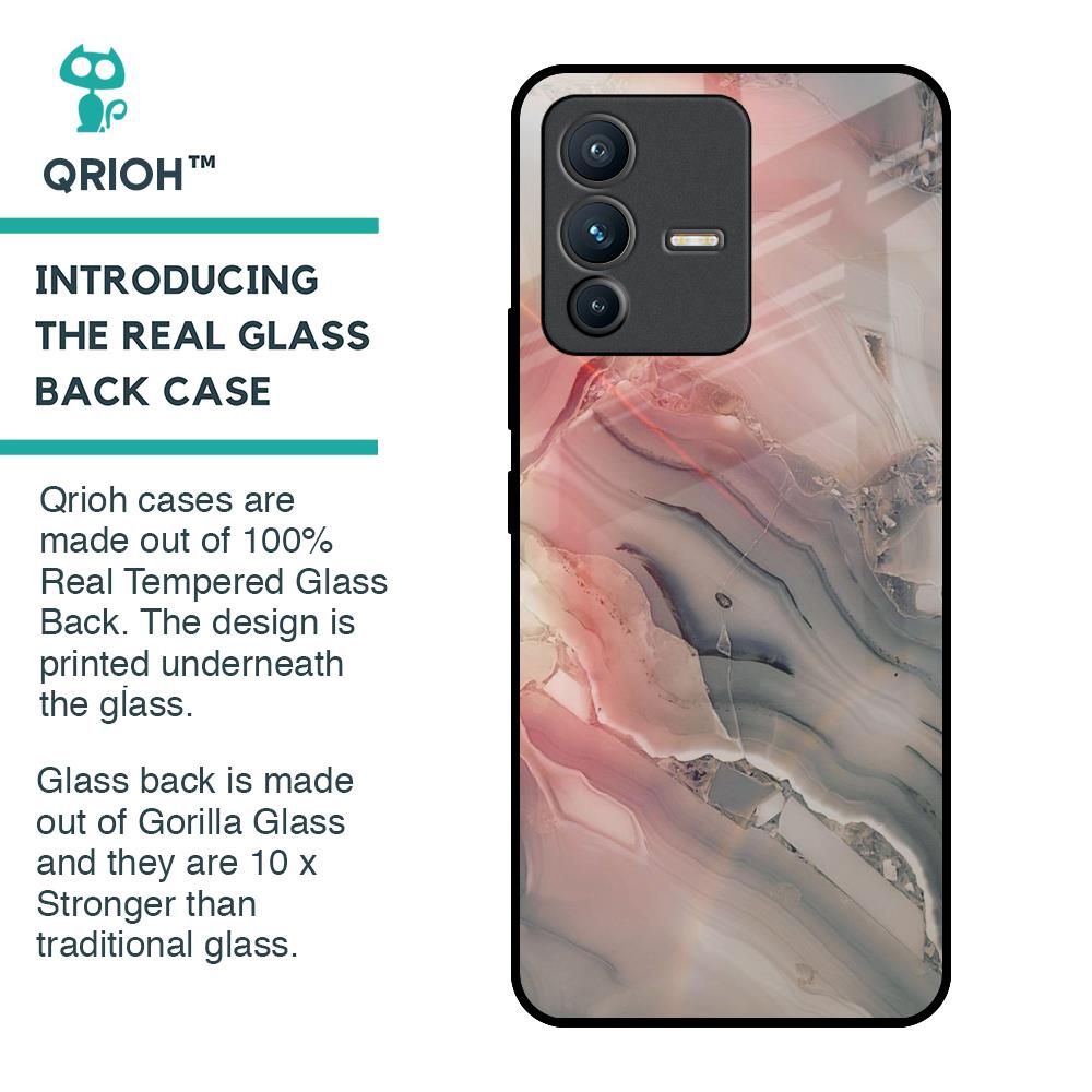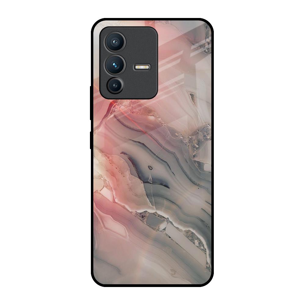 Pink And Grey Marble Glass Case For Vivo V23 5G