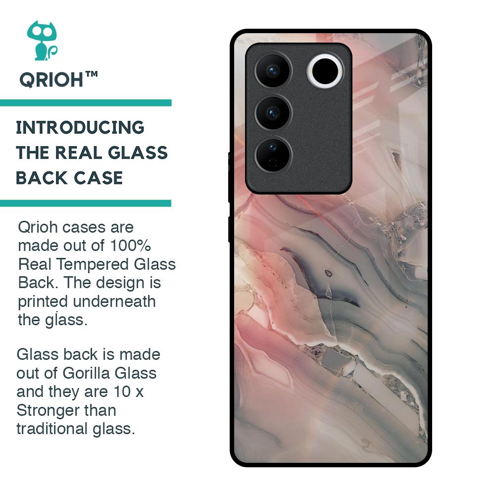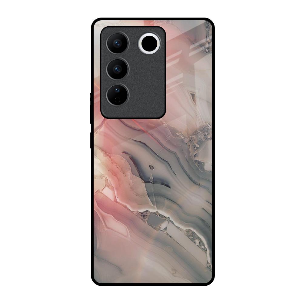 Pink And Grey Marble Glass Case For Vivo V27 Pro 5G