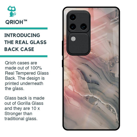 Pink And Grey Marble Glass Case For Vivo V30 Pro 5G