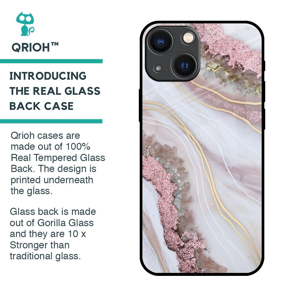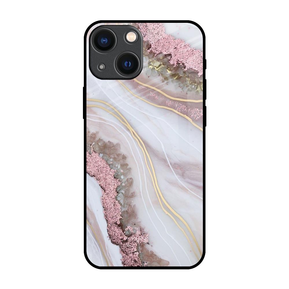 Pink & Gold Gllitter Marble Glass Case for iPhone 14 Plus