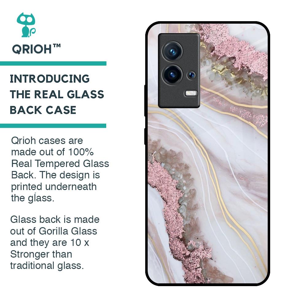 Pink & Gold Gllitter Marble Glass Case for IQOO 9 5G