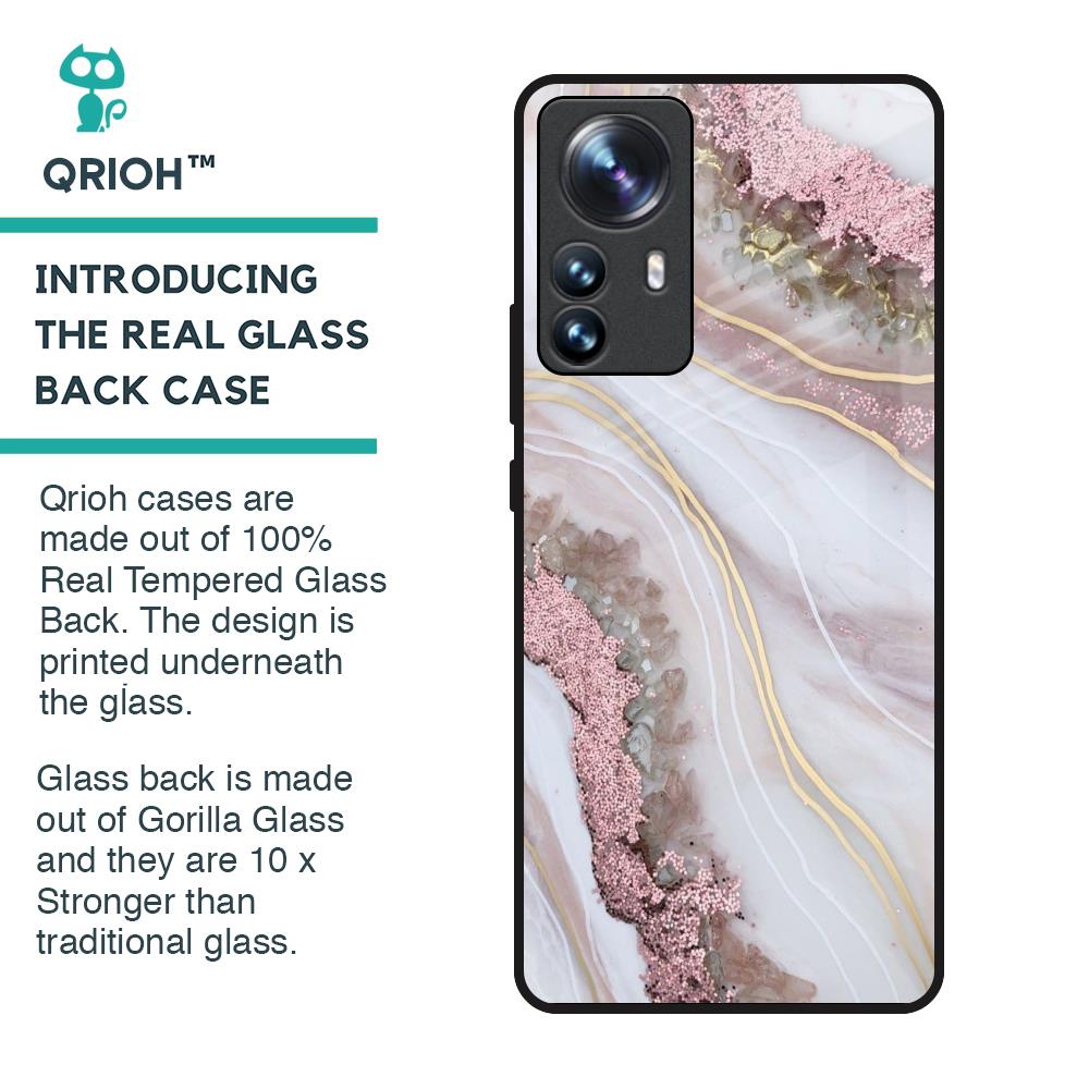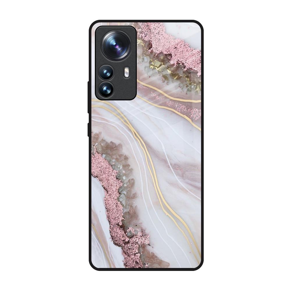 Pink & Gold Gllitter Marble Glass Case for Mi 12 Pro 5G