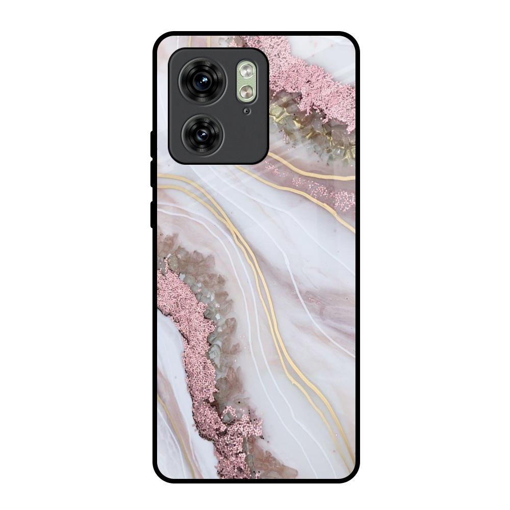Pink & Gold Gllitter Marble Glass Case for Motorola Edge 40