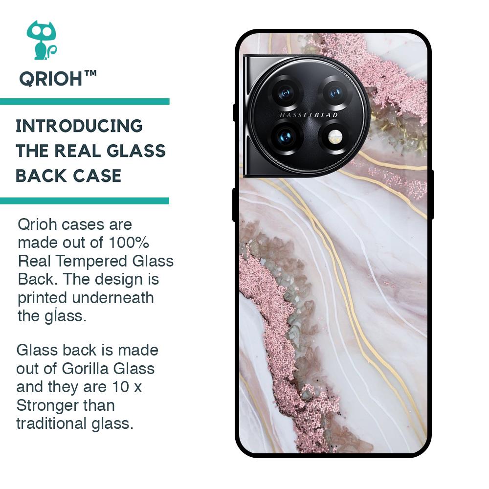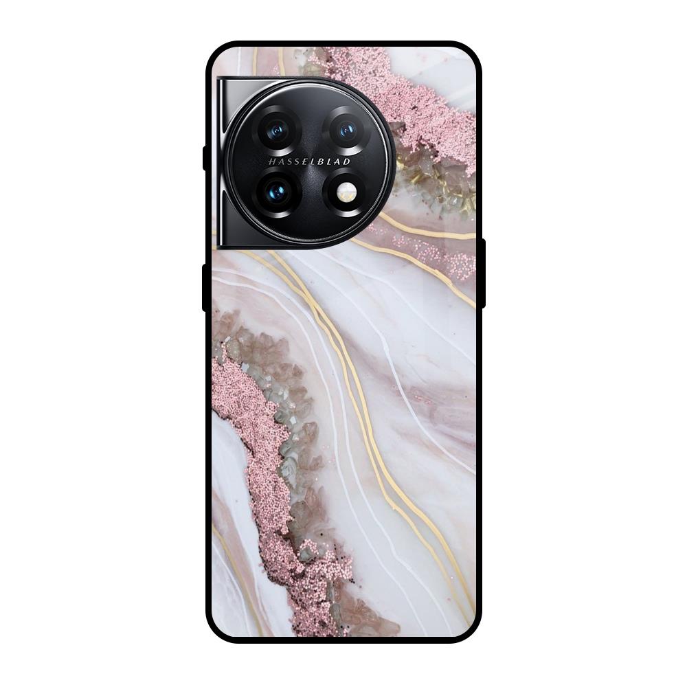 Pink & Gold Gllitter Marble Glass Case for OnePlus 11 5G