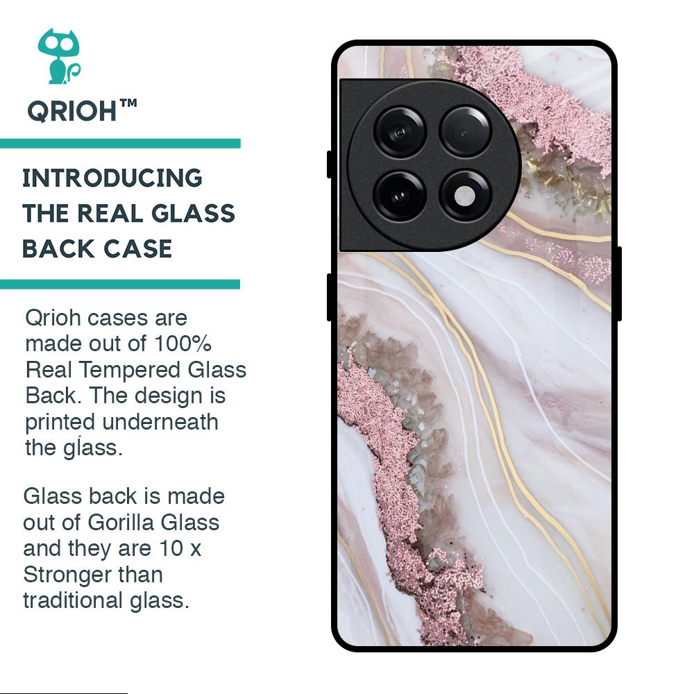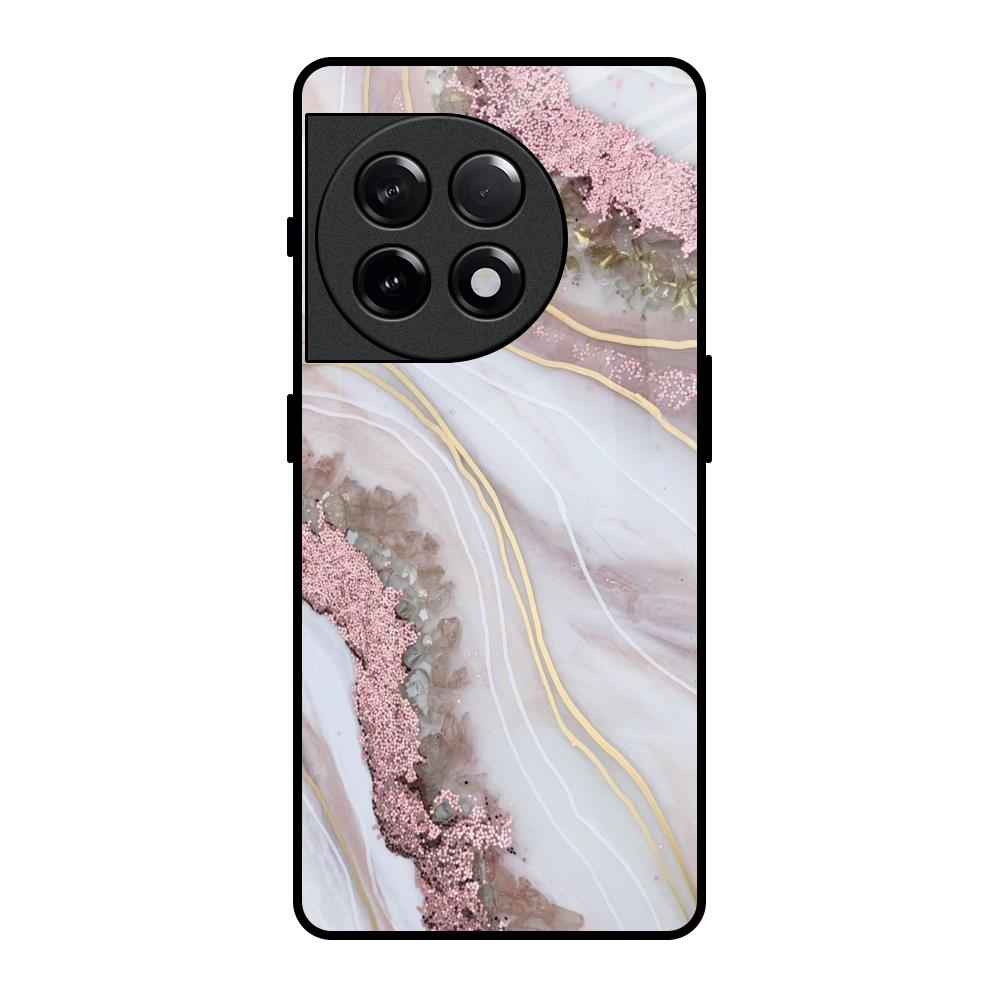 Pink & Gold Gllitter Marble Glass Case for OnePlus 11R 5G