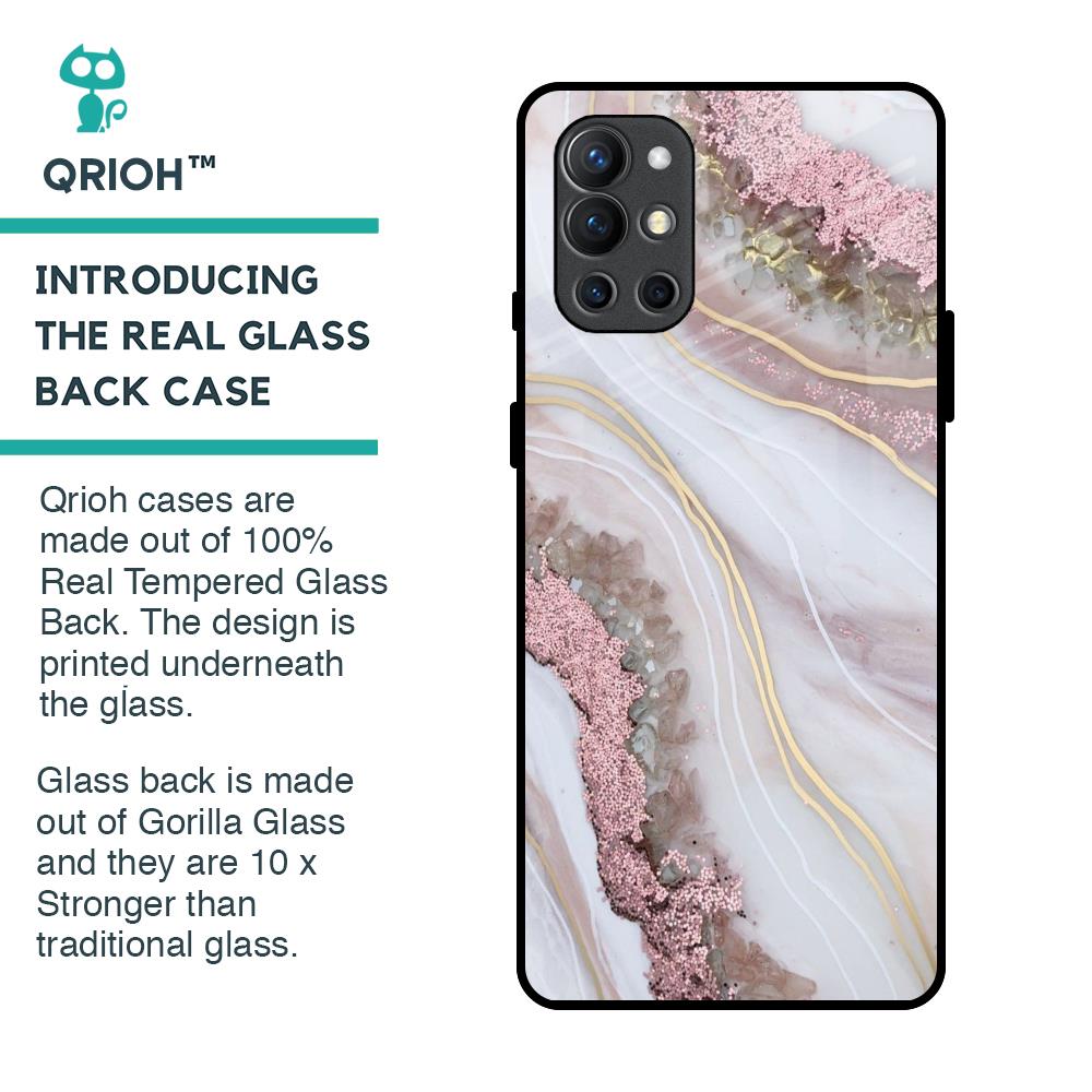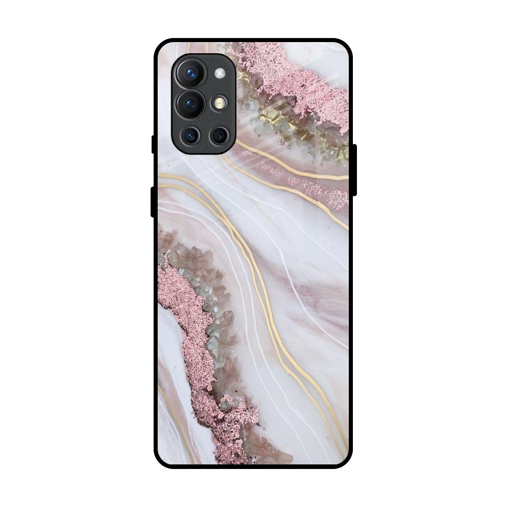 Pink & Gold Gllitter Marble Glass Case for OnePlus 9R