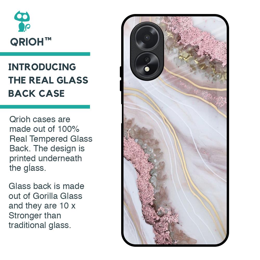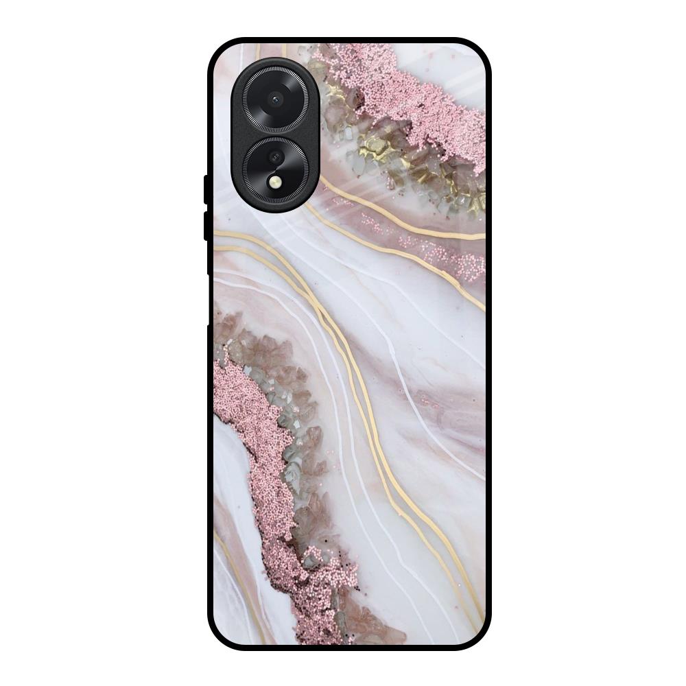 Pink & Gold Gllitter Marble Glass Case for Oppo A38