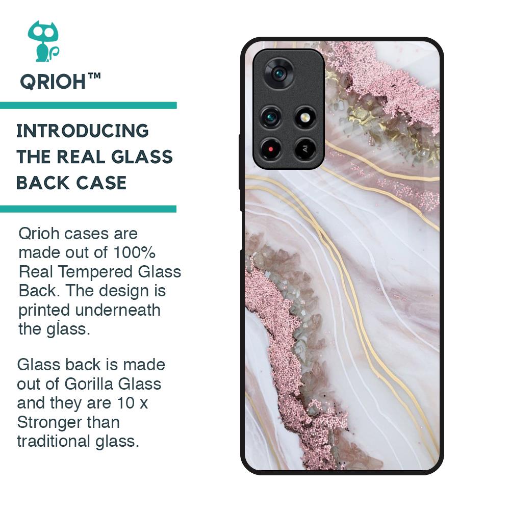 Pink & Gold Gllitter Marble Glass Case for Poco M4 Pro 5G