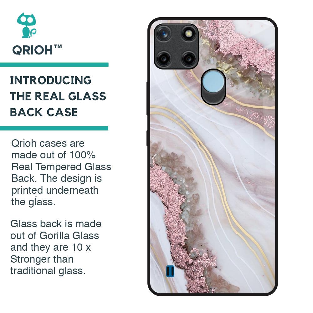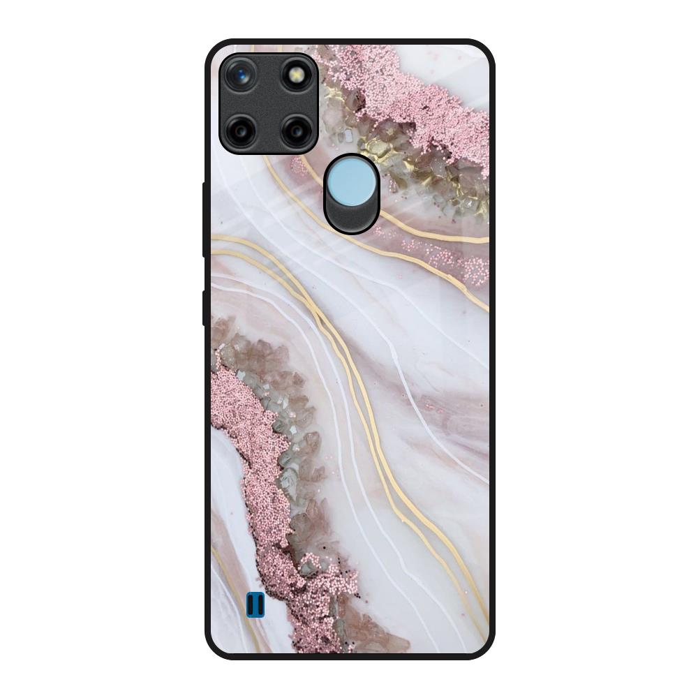 Pink & Gold Gllitter Marble Glass Case for Realme C21Y