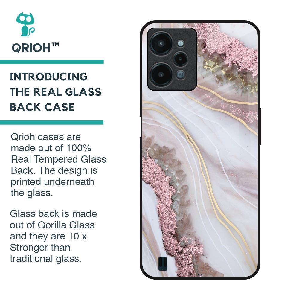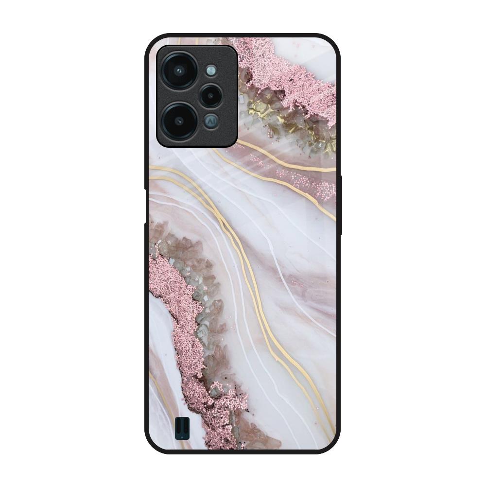 Pink & Gold Gllitter Marble Glass Case for Realme C31