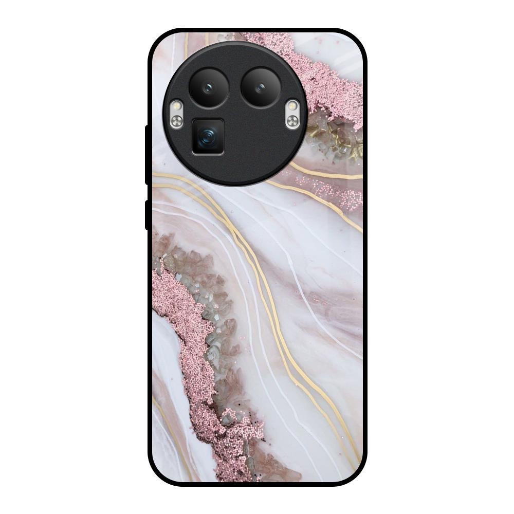 Pink & Gold Gllitter Marble Glass Case for Realme GT8 Pro 5G