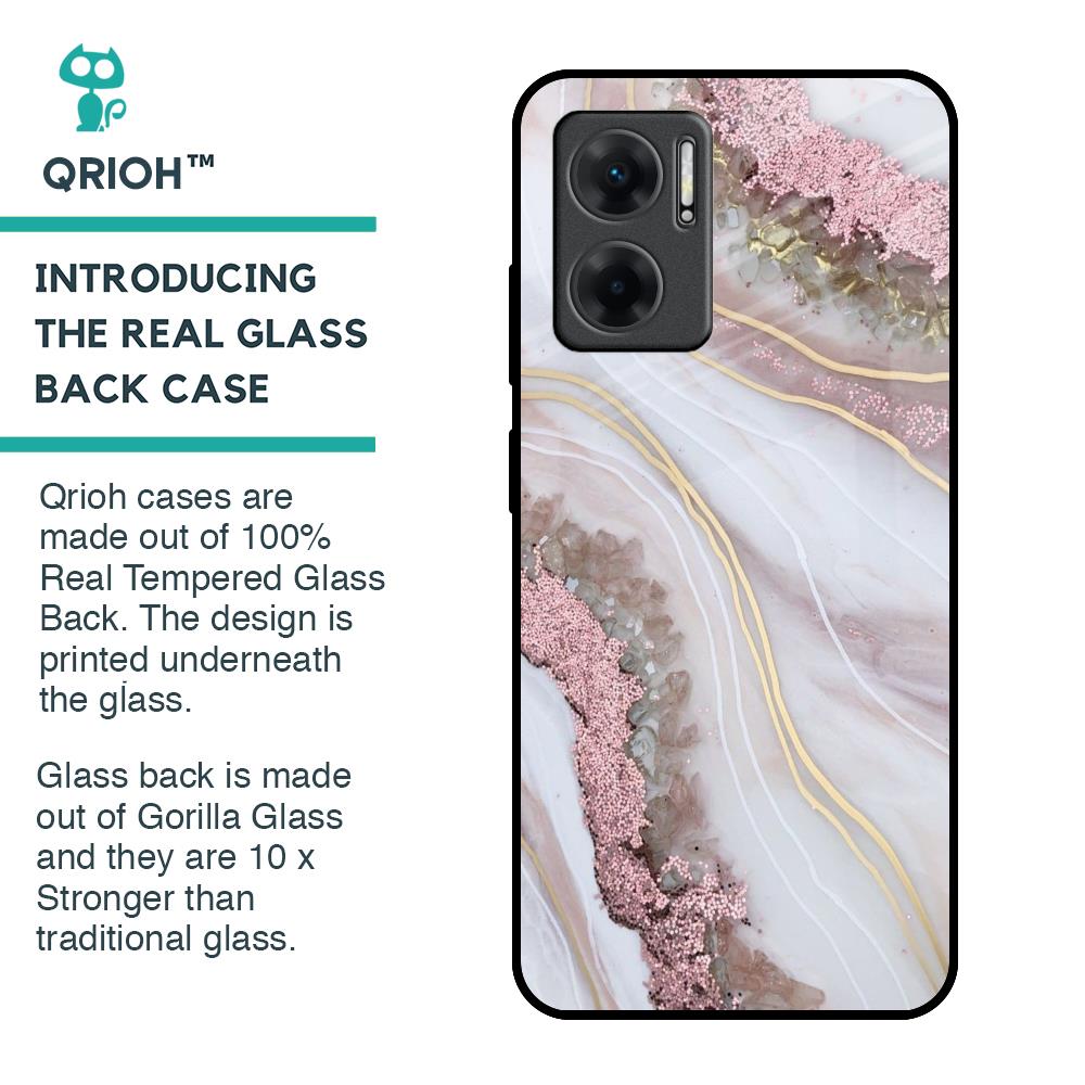 Pink & Gold Gllitter Marble Glass Case for Redmi 11 Prime 5G