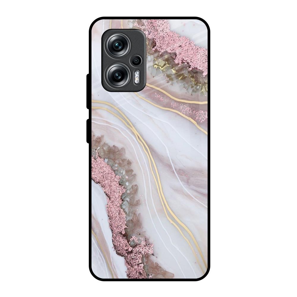 Pink & Gold Gllitter Marble Glass Case for Redmi K50i 5G