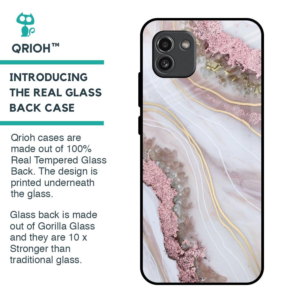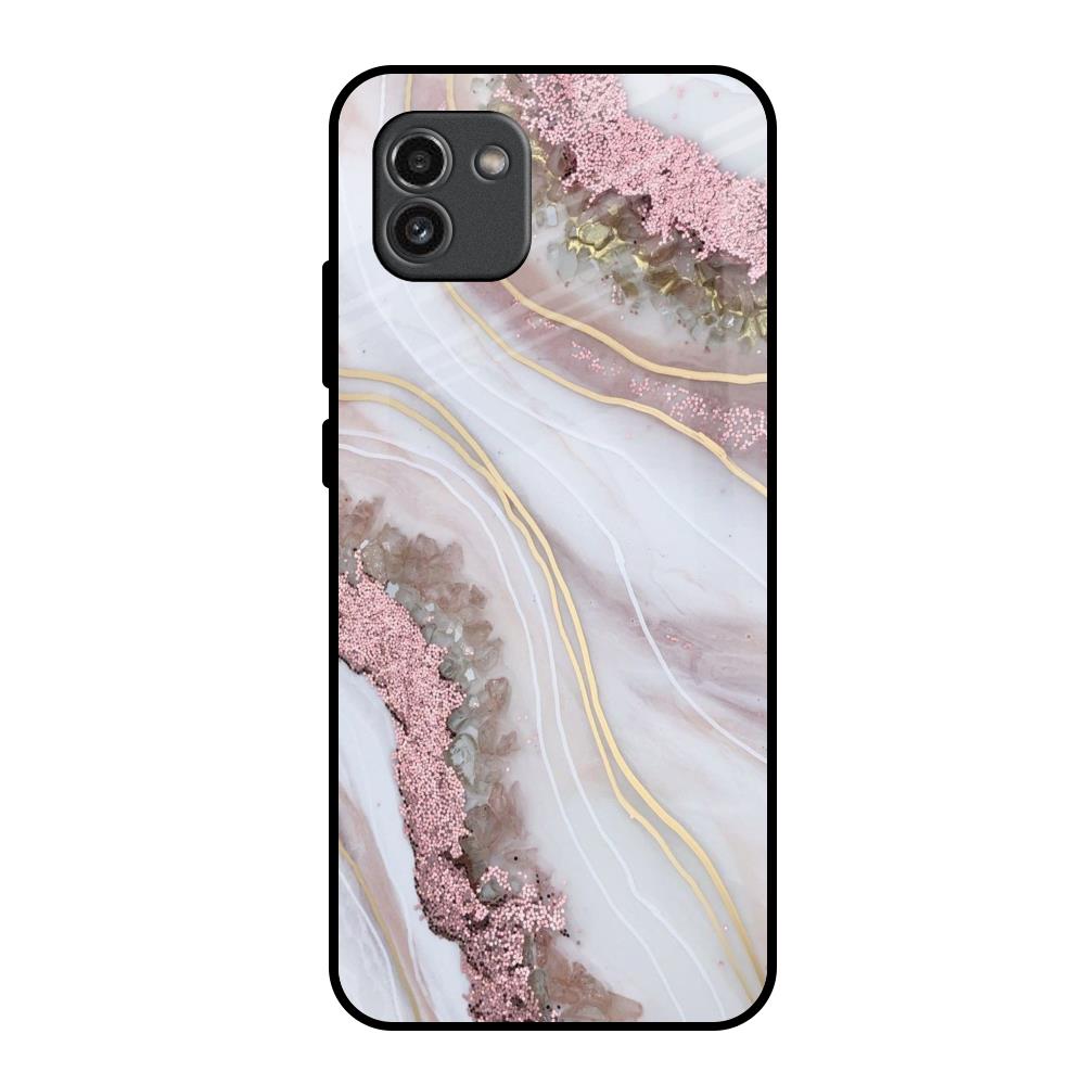 Pink & Gold Gllitter Marble Glass Case for Samsung Galaxy A03