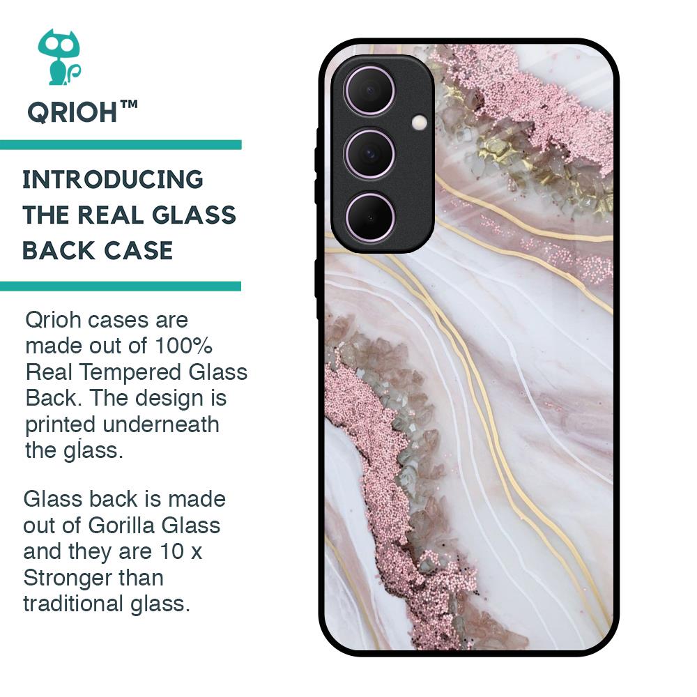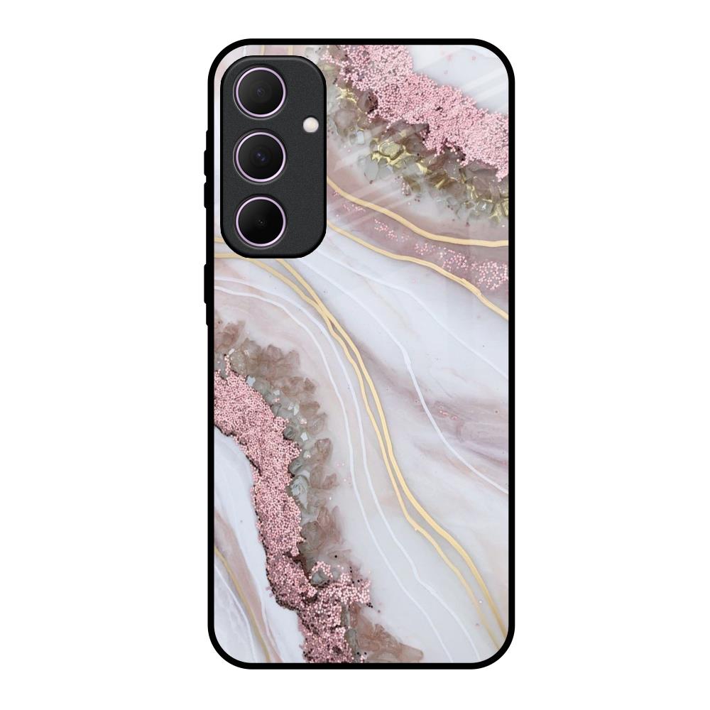 Pink & Gold Gllitter Marble Glass Case for Samsung Galaxy A35 5G