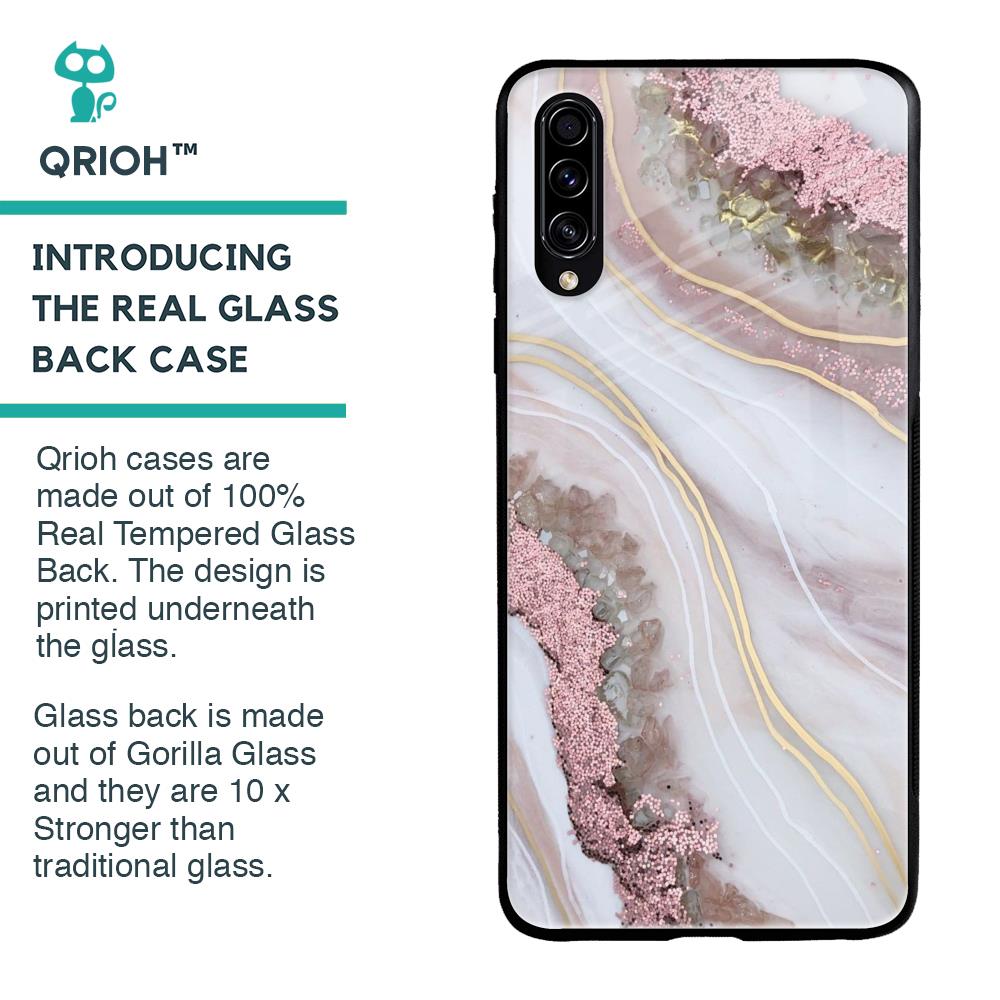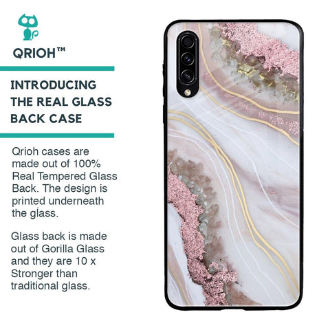Pink & Gold Gllitter Marble Glass Case for Samsung Galaxy A70s