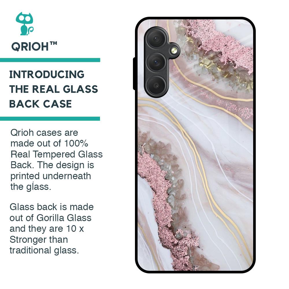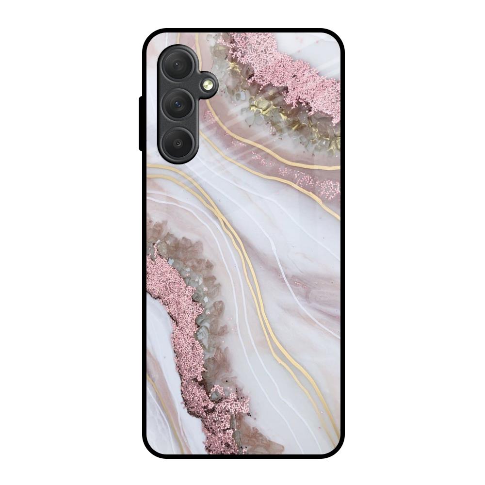 Pink & Gold Gllitter Marble Glass Case for Samsung Galaxy F54 5G